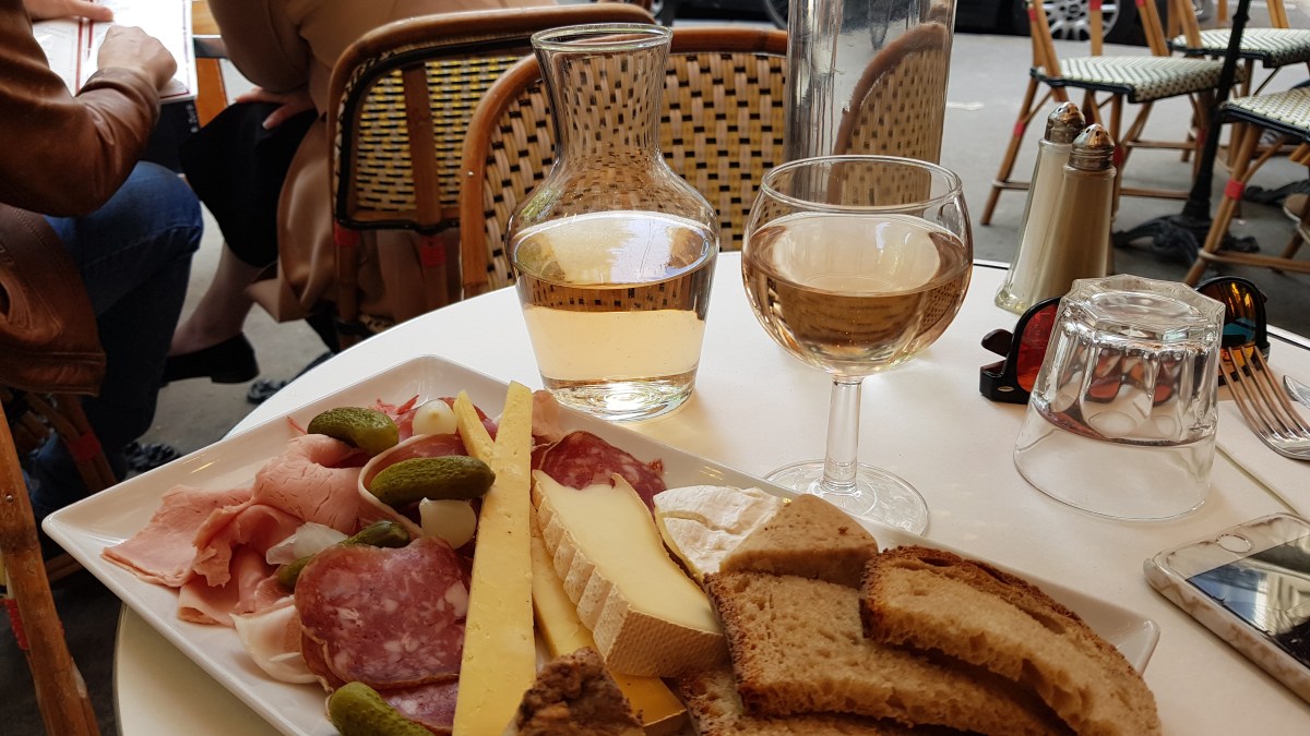 Le Café Gustave, 23 Avenue de la Bourdonnais, 75007 Paris: A cute little spot that’s an ideal rest stop near the Eiffel Tower. We enjoyed a charcuterie & cheese platter over a glass of rosé each. The selection included a generous serving of prosciutto, baked ham, salami, pâté, duck hash, plus a number of soft and hard cheeses including Camembert and Casalet. A welcoming street-side brasserie, it has lovely views of the canopy of trees with happy, friendly servers.