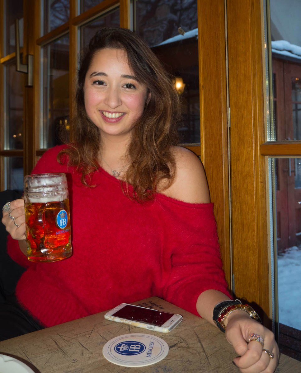 Hofbräuhaus München, Platzl 9, 80331 München: First of all, visiting the Hofbräuhaus is a must when in Munich. It gives you the true experience of what beer halls are like, and the Bavarian atmosphere too. It’s especially fun during Oktoberfest, if you’re lucky enough to get a spot, but all year-round it’s a great place to go. Whether you’re with family or friends, I highly recommend visiting the Hofbräuhaus. Their beers are very good, and the food is especially delicious! Be patient with the waiting & kitchen staff though, they have a lot of people to serve so it will be slow, but definitely worth the experience. Also you might need to do a few rounds looking for a free spot during peak hours.