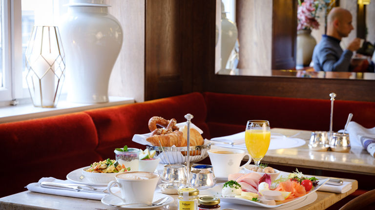 Cookie FM recommends: Dallmayr Breakfast, Pancakes, Omelette with Cheese & Ham, Smoked Salmon, Shrimp Cocktail, Bärlauchravioli with Asparagus, Heisse Schokolade, Russische Scholoade, Schokokuchen, Käsekuchen, Creme-Charlotten, Prinzregententorte